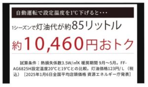 ファンヒーターと違い屋外の灯油タンクから直結なので